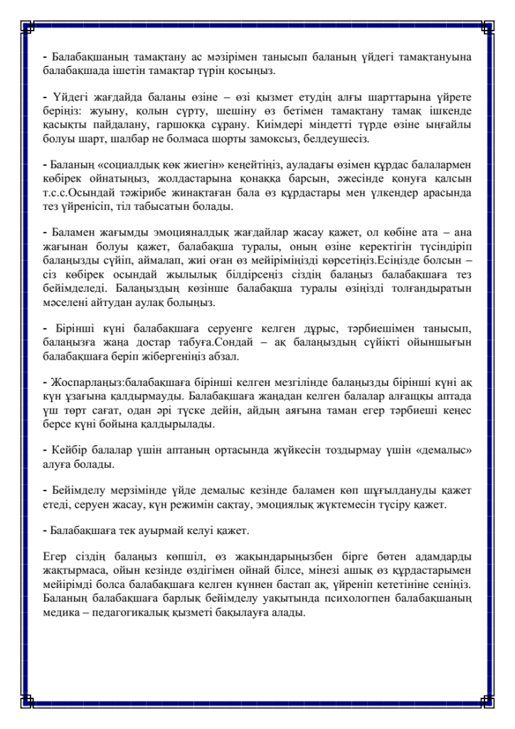 БАЛАНЫҢ БАЛАБАҚШАҒА БЕЙІМДЕЛУІ